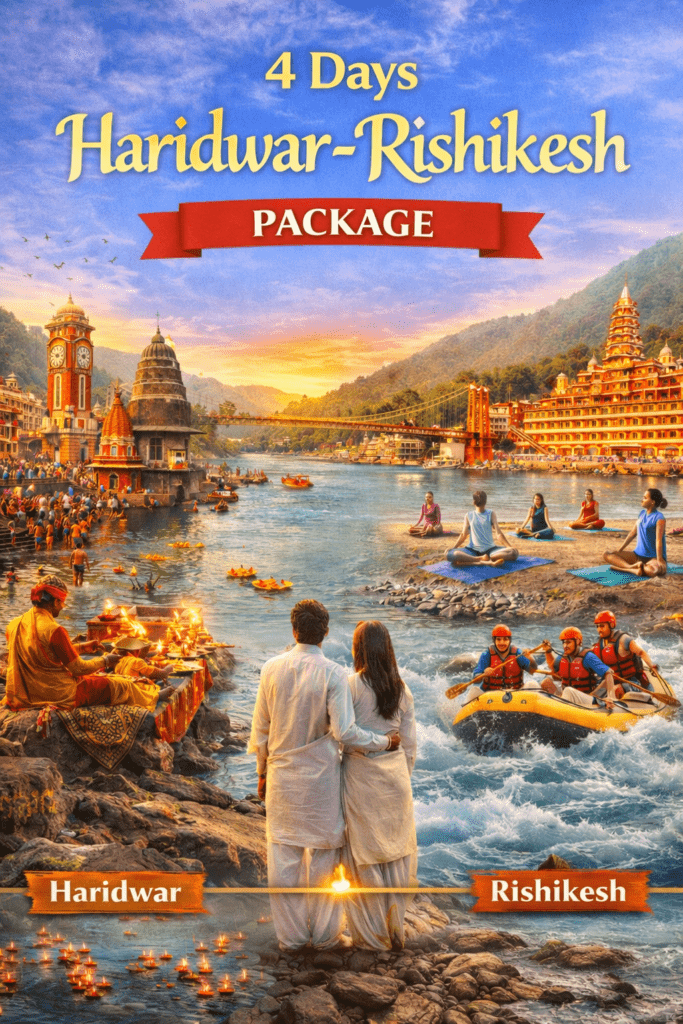 Our 4-day Delhi to Haridwar Rishikesh Tour Package is designed for travelers seeking spirituality, peace, and light adventure. This tour lets you explore the holy city of Haridwar and the yoga capital Rishikesh, where you will witness the divine Ganga Aarti at Har Ki Pauri, visit sacred temples, enjoy ropeway rides, experience river rafting, and explore the spiritual charm of the Himalayas.